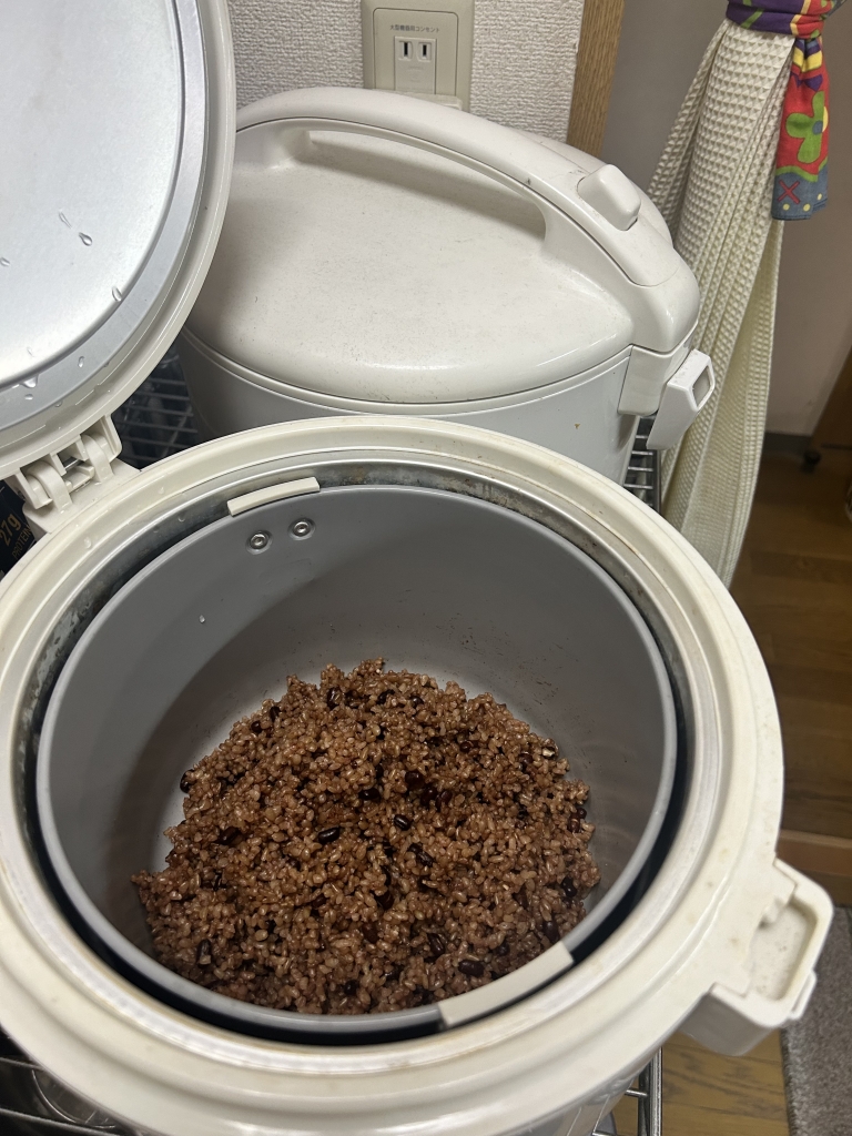 《はと麦入り発芽玄米》を作る際の《はと麦》を入れるタイミングに、はと麦の代わりに《大さじ3の小豆🫘》を入れます。