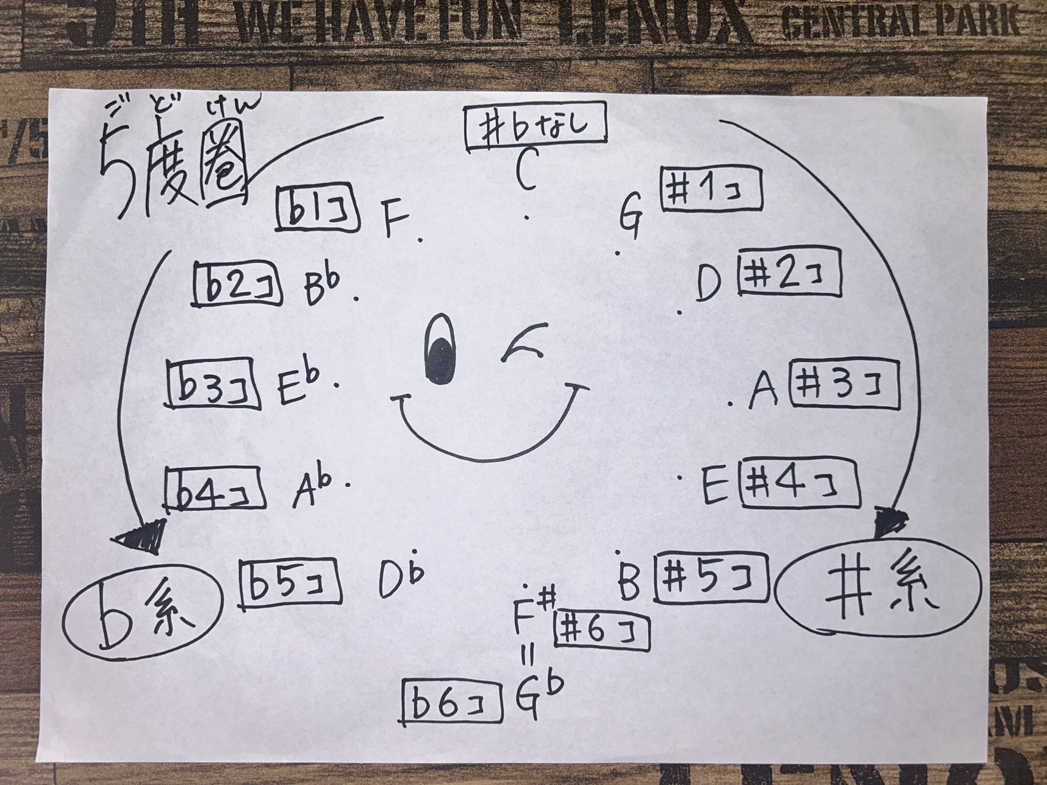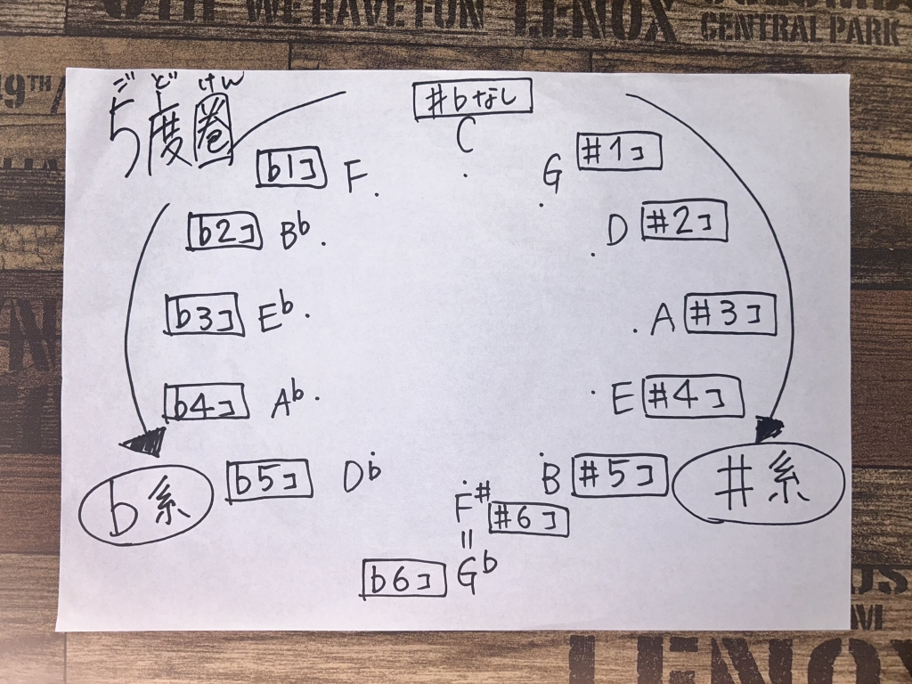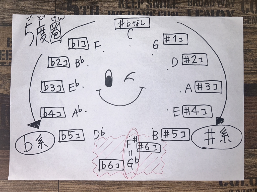 左周りには♭(フラット)が増えていってる🎵